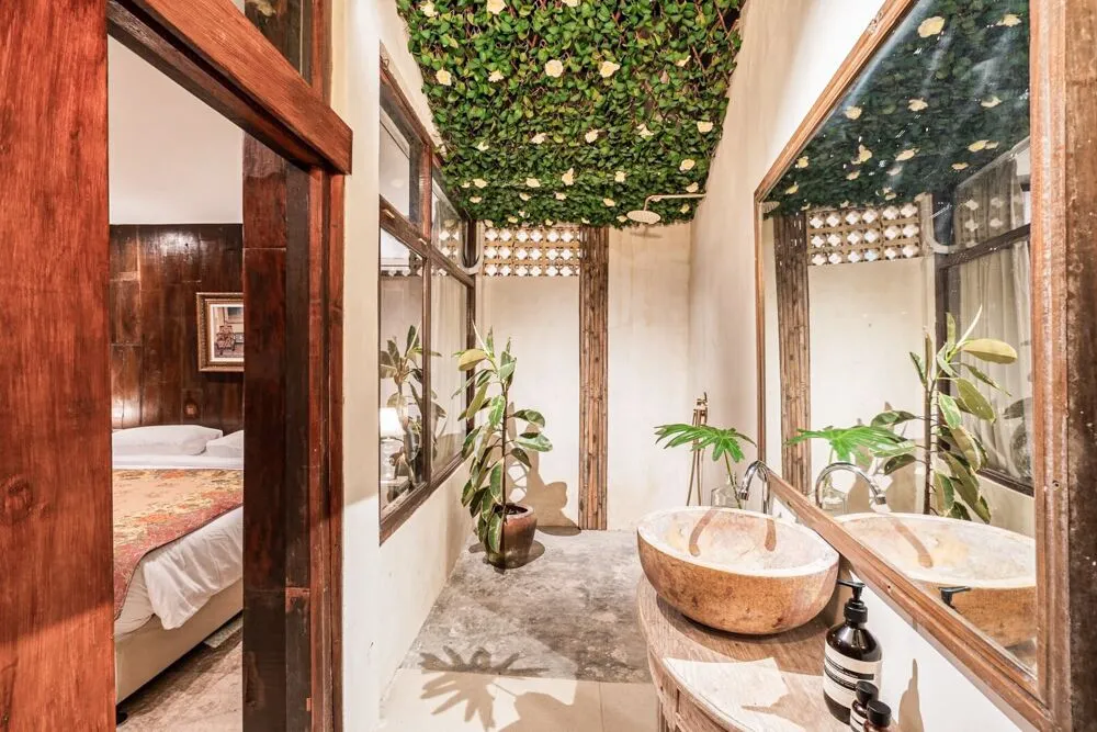 The hotel’s secluded riverbank location provides a serene escape from the hustle and bustle of Canggu. The lush courtyard garden, complete with a striking 25-meter emerald pool, offers a perfect spot to relax and unwind. The alfresco lounge and dining area provide the ideal setting for enjoying delicious meals and cocktails under the open sky. Perfect setting to brush off with the likes of musicians, artists, and fashionistas. Whether it’s the late-night jam sessions in the lounge or the impromptu gatherings by the pool.